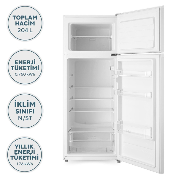 KUMTEL ÇİFT KAPILI BUZDOLABI 204 LT