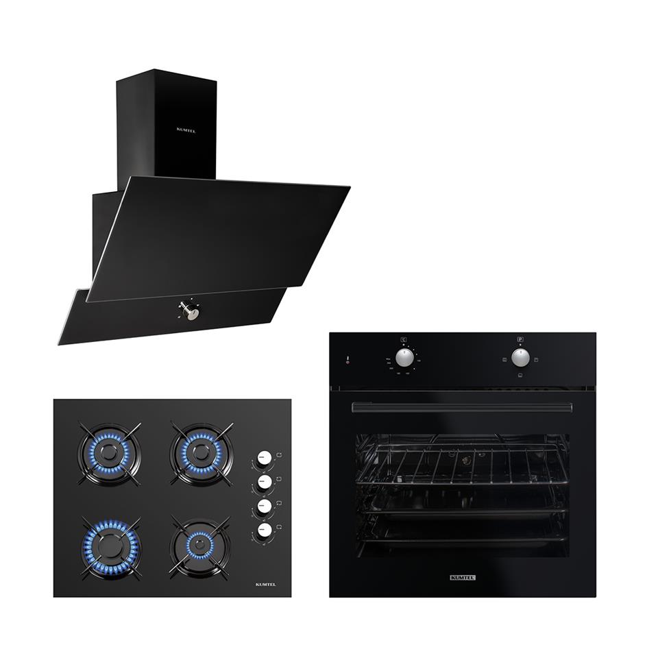 KUMTEL BLACK ENAMEL OVEN CAM ANKASTRE SET